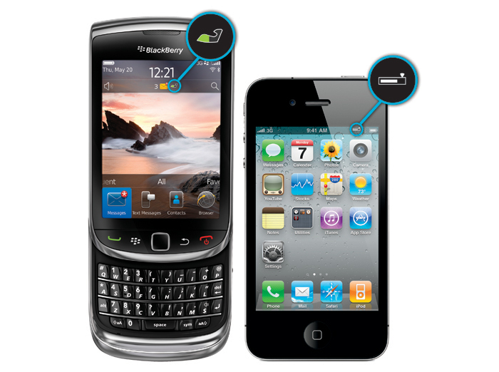 iPhone/BlackBerryのディスプレイに充電残量を表示