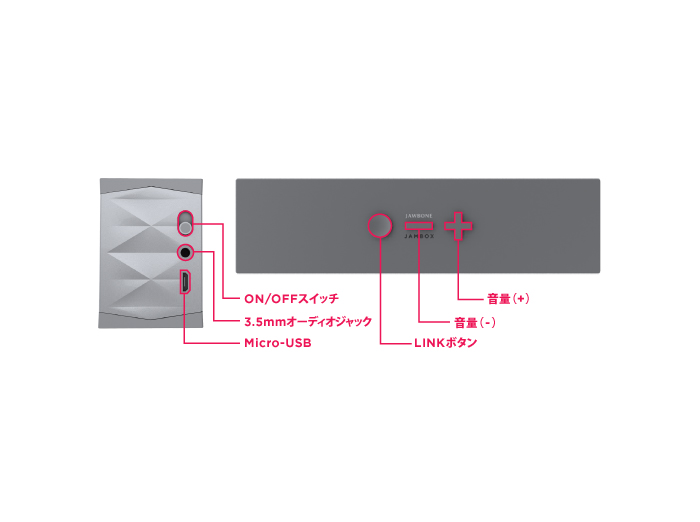 - Bluetooth経由の音声伝送に関しても、JawboneはBluetoothヘッドセットICONなどで培った技術を活かして、非常に高音質に仕上げていますので、これまでのイメージを決定的に覆すサウンドを提供することができます。
